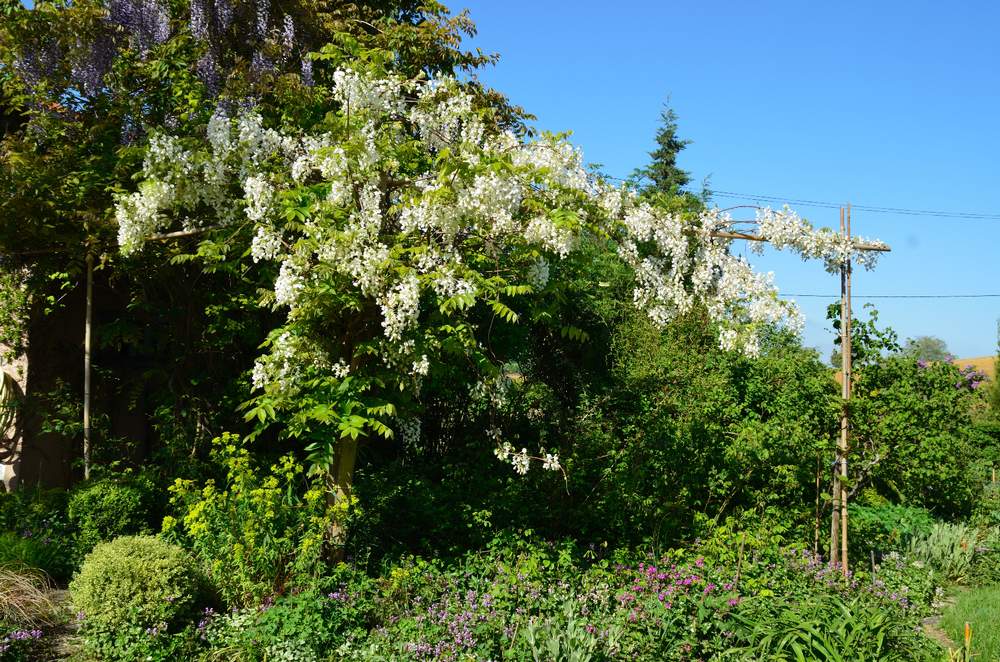 amandier prunier et prunus Spiea vanhouttei 'Aurea' Spirée et rosier banks Viornes sur mur ouest Viorne calcephalum Wistaria venusta 2 Wistaria venusta Nouvelles images La couleur bleue